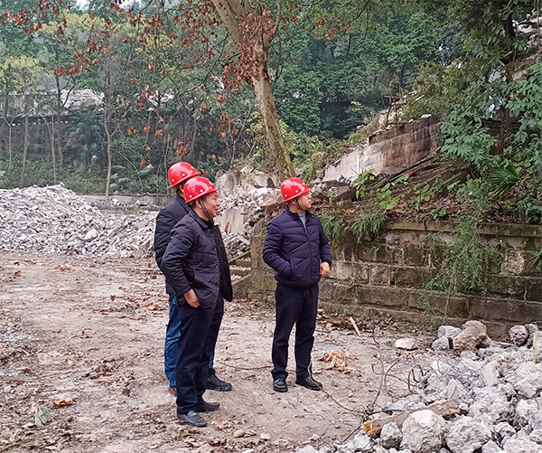 兩江建設公司總經理李斌檢查自動化儀表所危舊房拆除項目現場工作