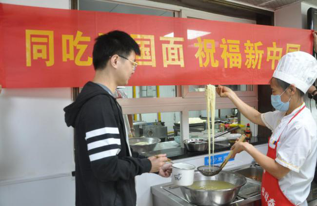 兩江建設公司員工 同吃愛國面 祝福新中國