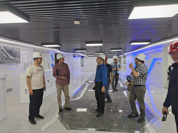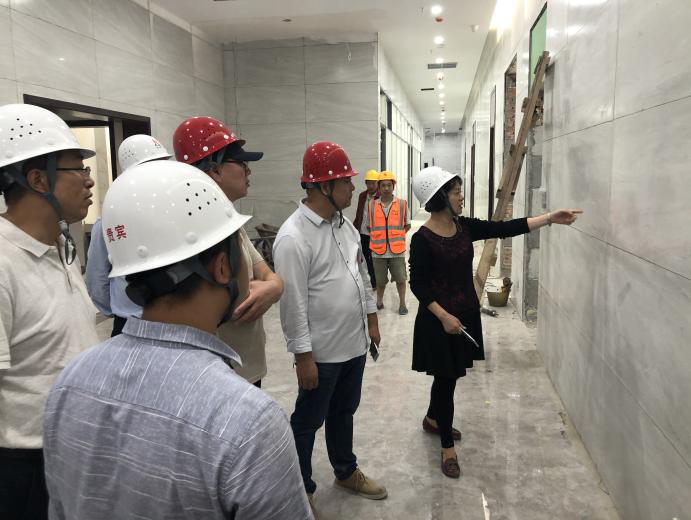 向萍副總經(jīng)理對國家智慧醫(yī)保實驗室及配套用房裝修項目觀光電梯鋼結(jié)構(gòu)底座混凝土孔洞提出了補強方法的建議,同時對1F,5F裝修效果進行了點評。