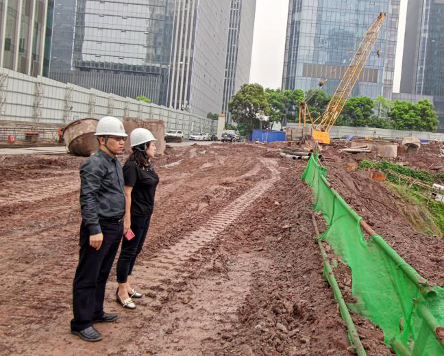 9月21日,公司總工程師、副總經(jīng)理向萍,到重慶北站南廣場改造項目、國家智慧醫(yī)保實驗室及配套用房裝修項目、大坡路道路擋墻病害應(yīng)急搶險整治工程項目施工現(xiàn)場,對項目施工情況及質(zhì)量、安全生產(chǎn)工作情況進行檢查督導(dǎo)。公司副總經(jīng)理丁玉海對金融城6號項目平基土石方工程進行工程進度檢查。