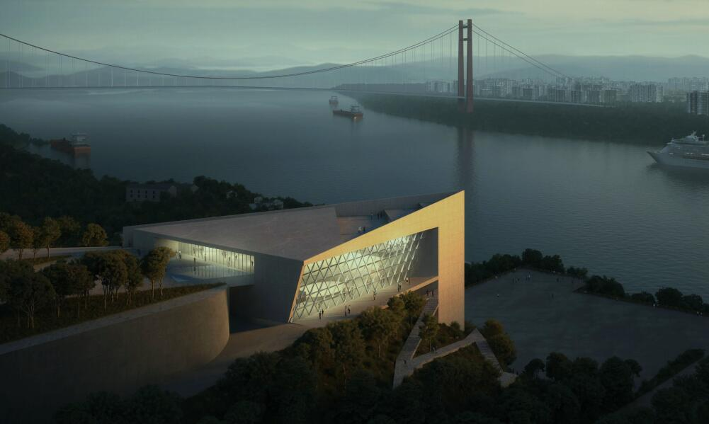 市天際線,北臨寸灘保稅區(qū),與南山隔江相望,距重慶江北機場約12公里。項目由地下兩層和地上一層組成的山地建筑,擬建項目呈三角形,±000=226.000m,總建筑面積約4210.00㎡,占地面積約1880.00㎡,項目共分4F(3F/-1F),單層面積約1500.00㎡左右,包括會議室、展廳、洽談區(qū)、參觀休息平臺及其他配套設施。