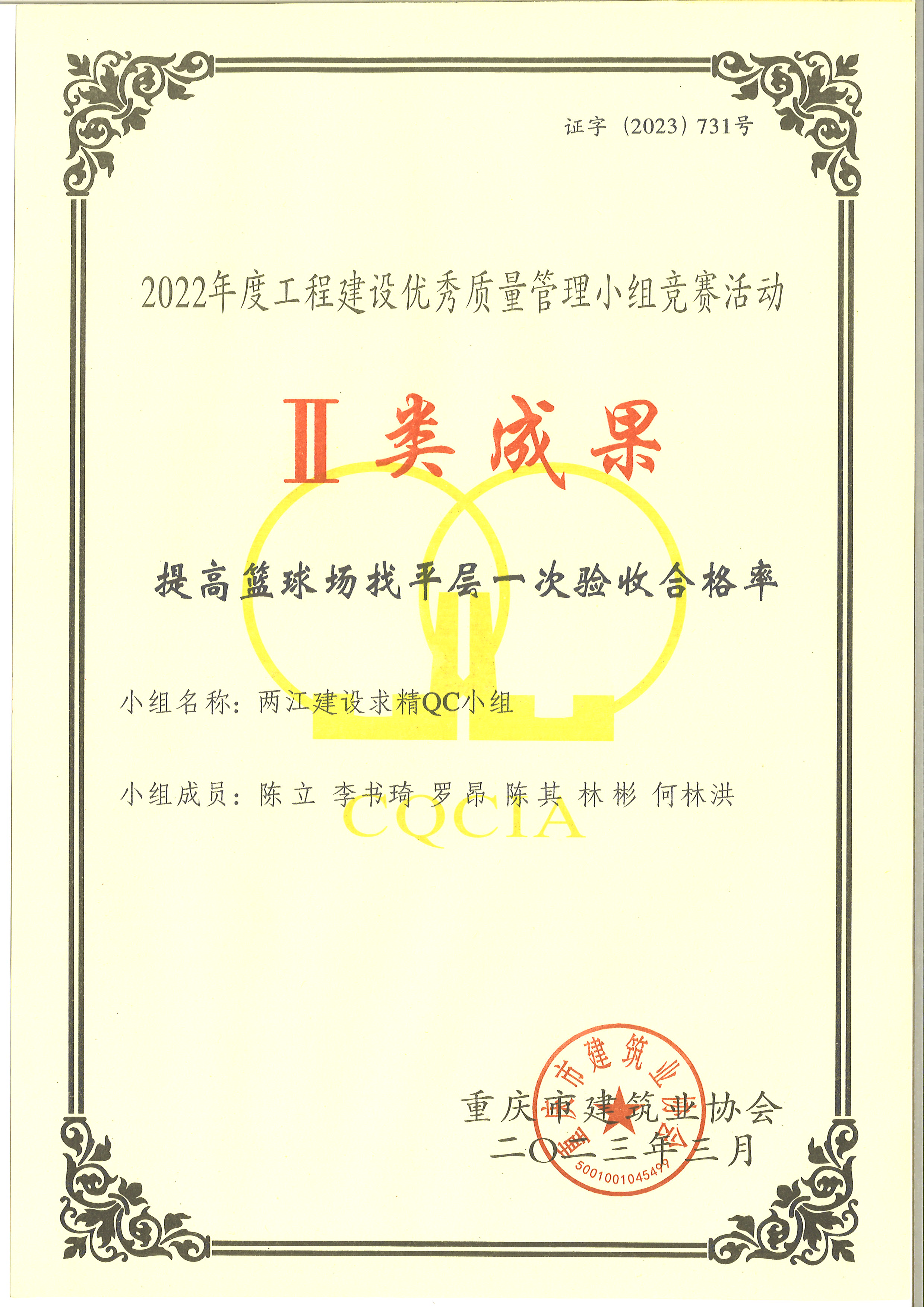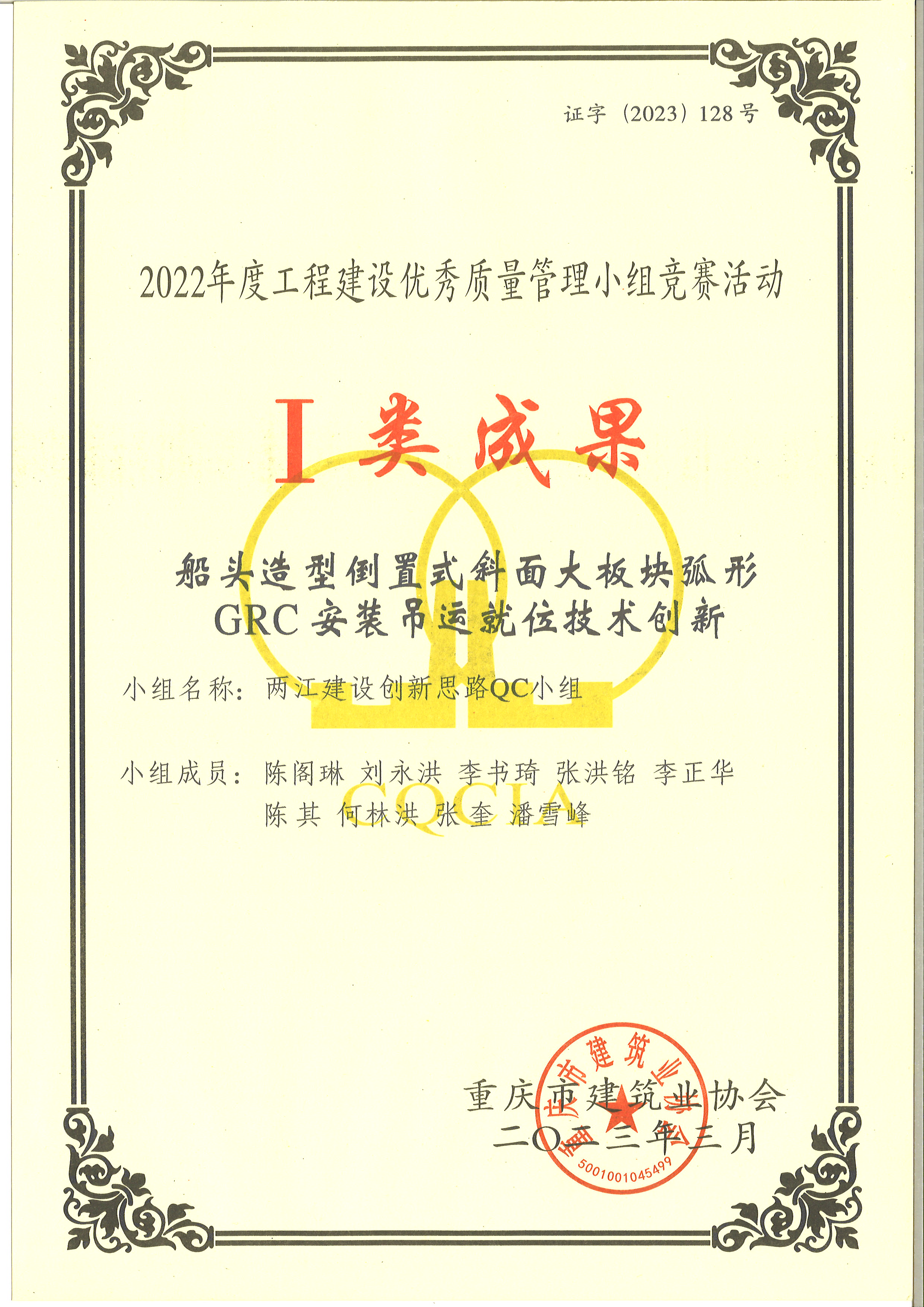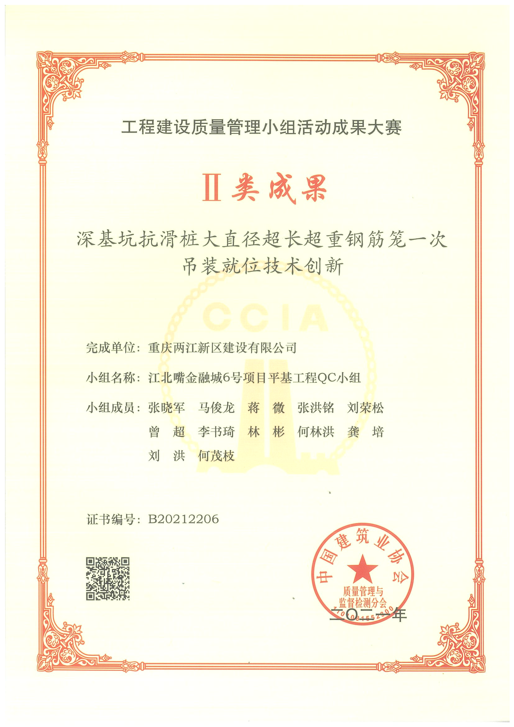 全國建設質量管理小組活動成果大賽二類成果