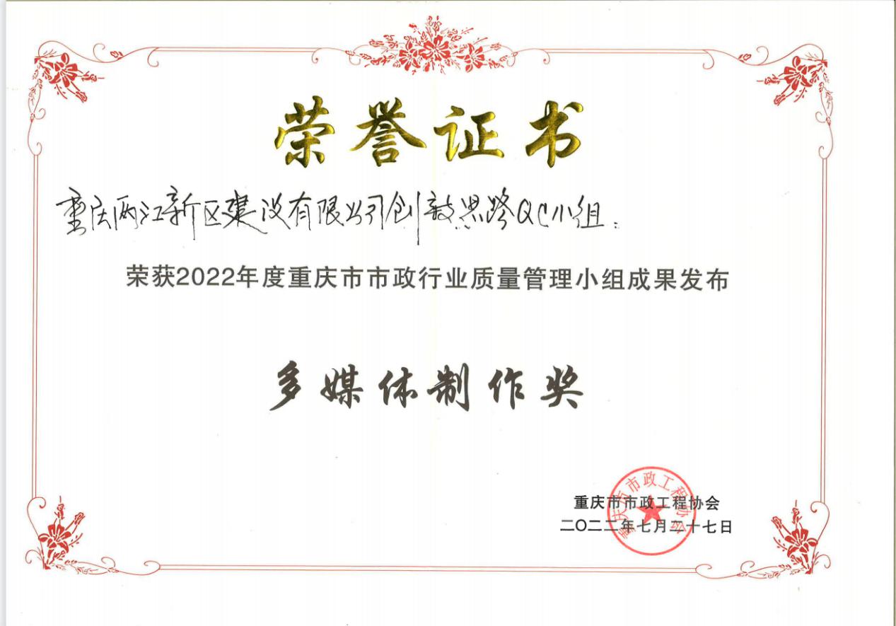 榮獲市2022年度市政工程質量管理小組一等獎和多媒體制作獎