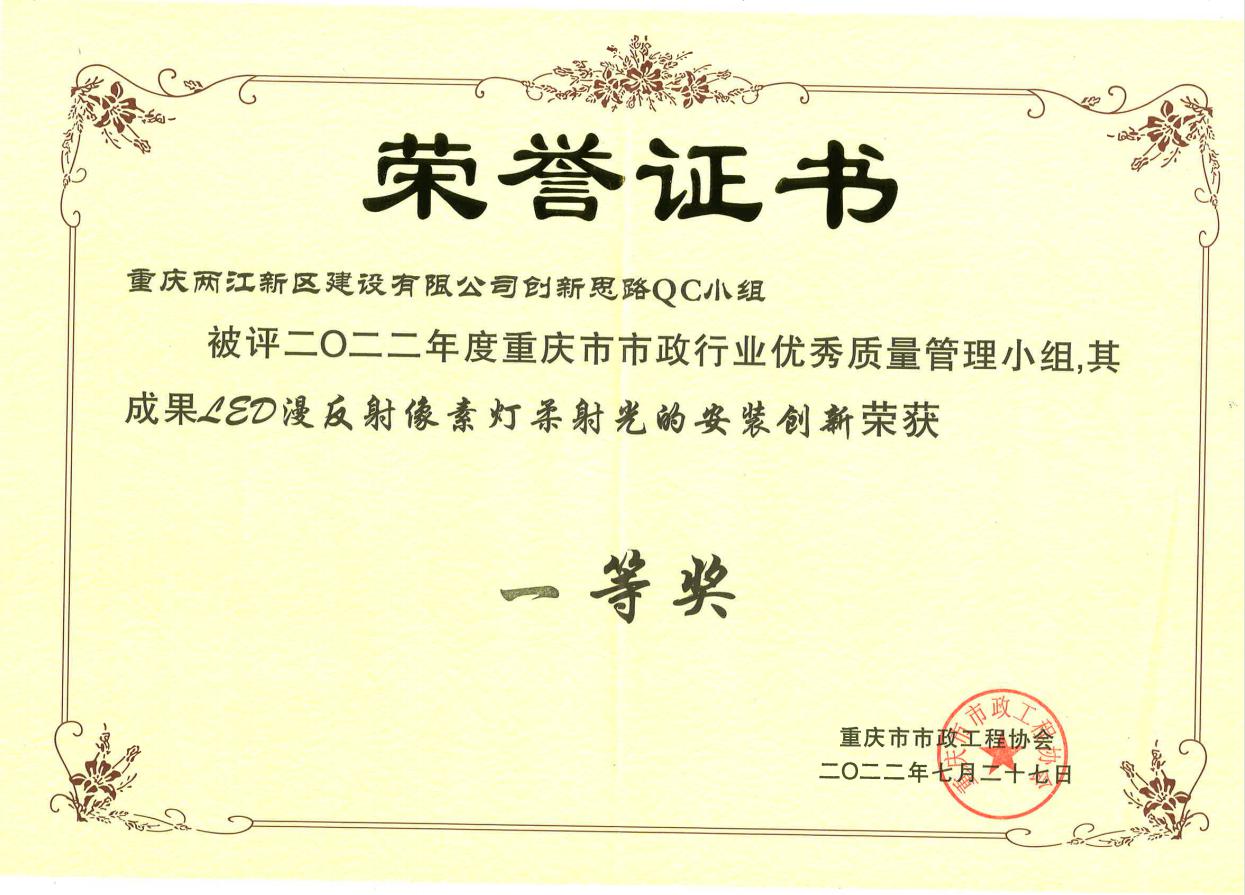 7月27日,重慶市市政工程優秀質量管理小組成果發布會在綦江圓滿召開。兩江建設公司創新思路QC小組成員經過精心組織,充分準備,其創新型成果“LED漫反射像素燈柔射光的安裝創新”榮獲重慶市2022年度市政工程質量管理小組一等獎和多媒體制作獎。