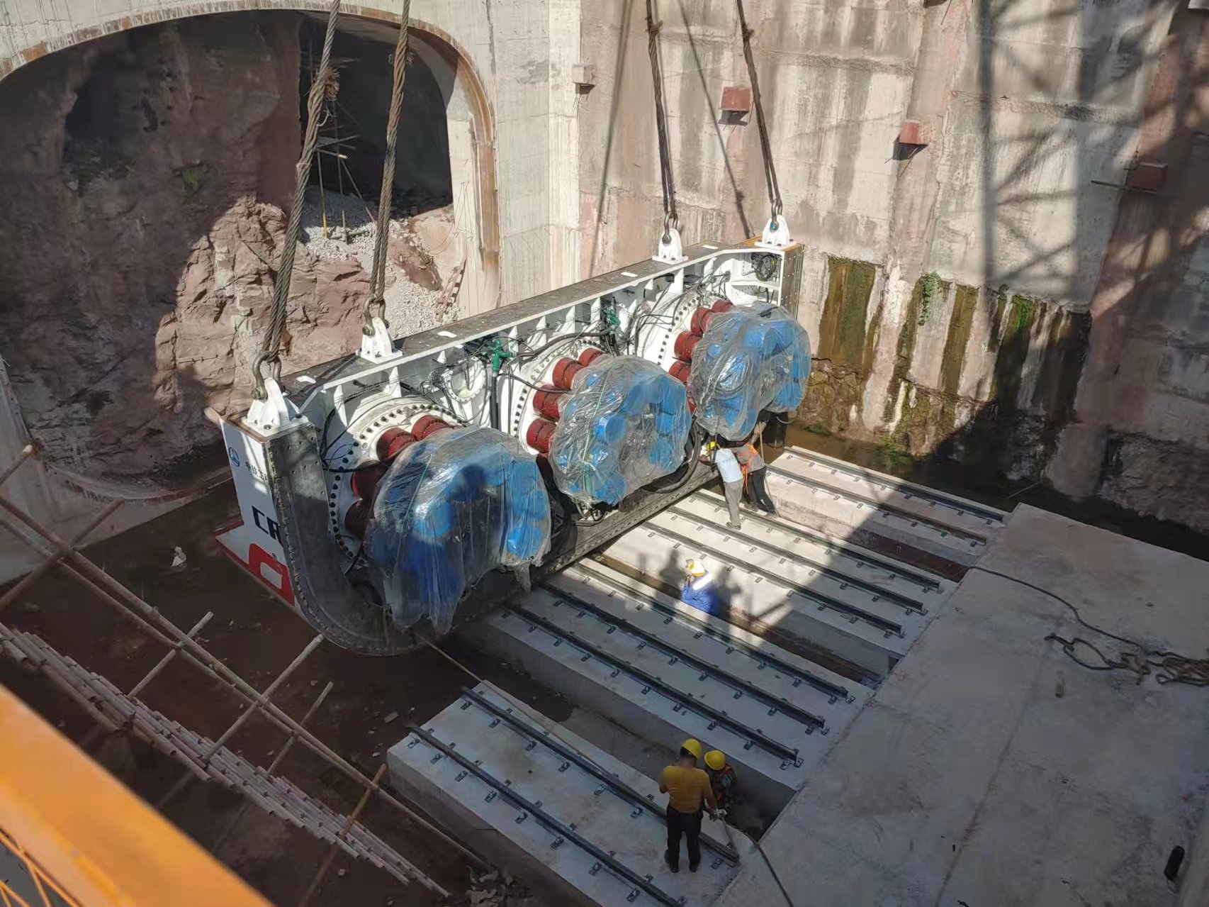 世界首臺全斷面硬巖矩形頂管機盾體順利完成吊裝下井作業