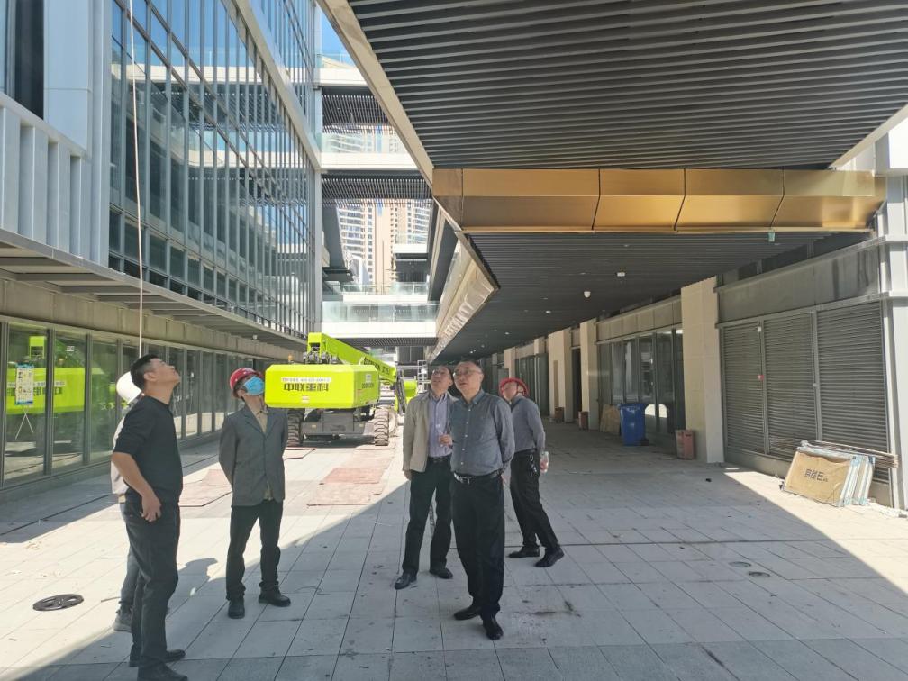 李寧董事長先后對北側水景、廊道鋁方通、剛連橋裝飾、車庫地坪漆等部位進行檢查,對項目整體效果呈現表示肯定;同時在工程細節部位也要做到精益求精的效果,特別是花池馬賽克面層、拉絲仿銅不銹鋼裝飾、剛連橋鋁方通裝飾效果等提出要求:“要站在游客的角度做好每一處細節。另外最近疫情反彈,在推動驗收工作的同時也要做好疫情防控工作”。