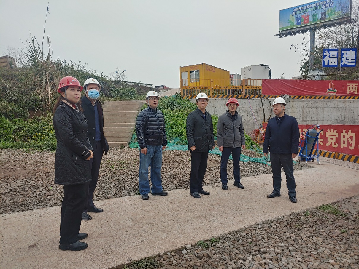 2月16日,江北嘴集團黨委副書記龐毅一行到A匝道頂推項目視察工作,兩江建設(shè)公司總經(jīng)理李斌、副總經(jīng)理丁玉海陪同。