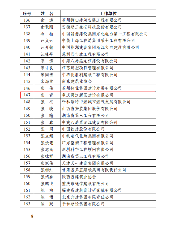 喜報|兩江建設公司張青同志受聘中施企協“工程建設企業文化建設專家”