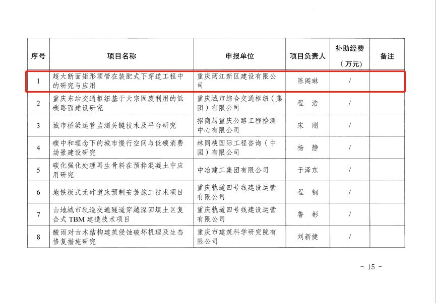 近日,重慶兩江新區建設建設有限公司1個課題獲重慶市住房和城鄉建設委員會2023年建設科技計劃立項。兩江建設公司本次被市住建委立項的指導性課題名為《超大斷面矩形頂管在裝配式下穿道工程中的研究與應用》。