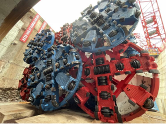 據了解,“掘進號”頂管機首次采用“六刀盤+六滾筒”復合破巖技術,總裝機重量約1000噸、主頂推力10300噸、中繼間推力7000噸,斷面開挖寬10.42米、高7.57米,斷面開挖覆蓋率達100%,具備強大的硬巖掘進能力,能在復雜地質條件下實現高效、穩定的隧道施工。與傳統的圓形盾構機相比,“掘進號”頂管機因大斷面矩形、可裝配這兩大創新亮點,為地下隧道和設施提供更合理的布局空間,使其空間利用率提高20%、輔助人工成本節約60%,施工效率提升、作業成本降低的同時,還能適應淺覆土、不斷交通,減少城市改造需交通轉換帶來的擁堵以及對原有地面、植被的大量破壞。