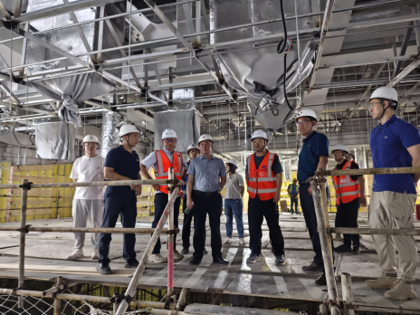 李董先后檢查了項目圖書館、多功能報告廳等區(qū)域的建設(shè)進度和安全文明施工情況。檢查過程中,李董分別聽取了項目負責人陶東海介紹本項目投資情況、工程總承包單位上海寶冶項目負責人汪林匯報施工現(xiàn)場建設(shè)進度。