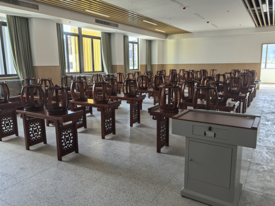 走進校園,智能教學系統、安全監控系統等先進設施一應俱全,并已提前調試完畢。智慧教室作為項目的一大亮點,不僅配備了先進的多媒體教學設備和高速網絡,還深度融合了重慶八中的教育理念和特色文化。理化實驗室內部設計充滿現代科技感,而音美專業教室又不失中國古典藝術之美。寬敞明亮的教室、藏書豐富的圖書館、設施完備的實驗室、溫馨舒適的學生食堂……每一處細節都彰顯了兩江建設公司對教育事業的深情厚誼。